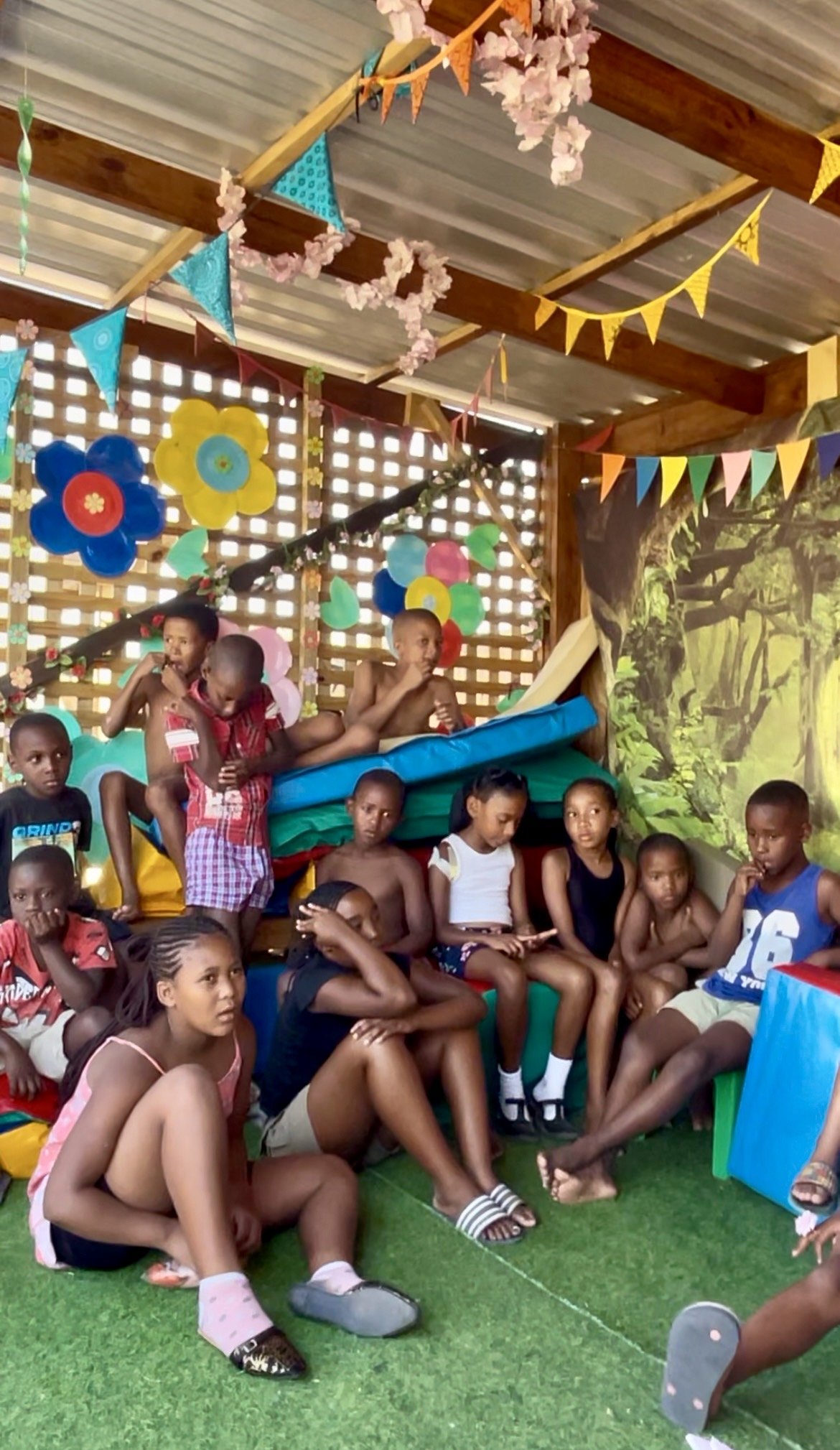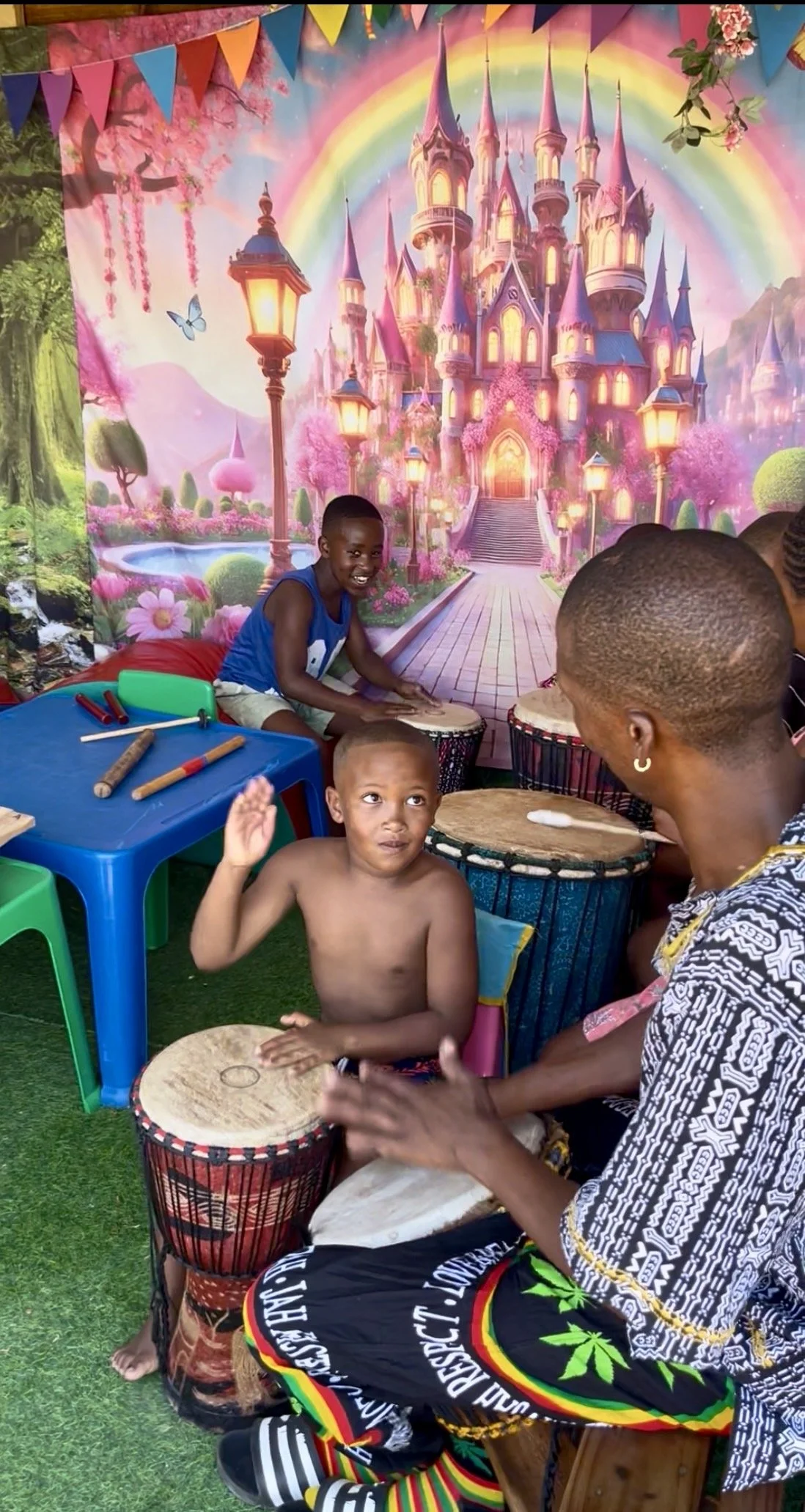 Van “Tannie Liz” en familie kregen we een prachtige donatie die bedoeld was voor ballen. In plaats van voor elk kind een bal te kopen (die toch snel kapot gaan of verdwijnen) heb ik in  overleg de donatie mogen gebruiken voor iets heel bijzonders: traditionele muziekinstrumenten. We hebben base drums, djembés, tamboerijnen en marimba’s aangeschaft, allemaal handgemaakt in onder andere Ghana en Zimbabwe. Het was een investering, maar wat is het geweldig om te zien hoe de kinderen ritme gewoon in hun bloed hebben. Zonder enige uitleg ontstond er meteen een jamsessie, pure magie.