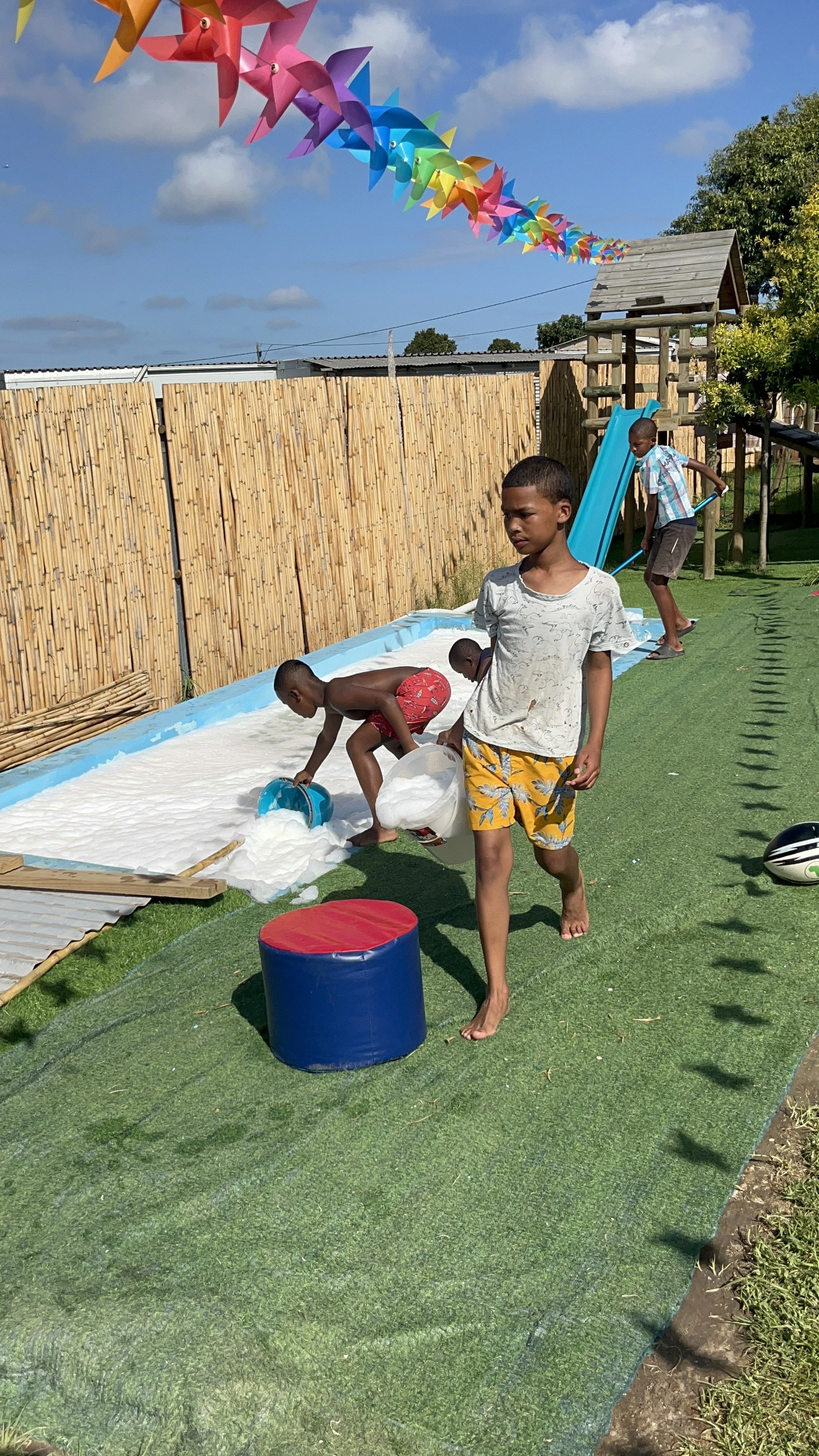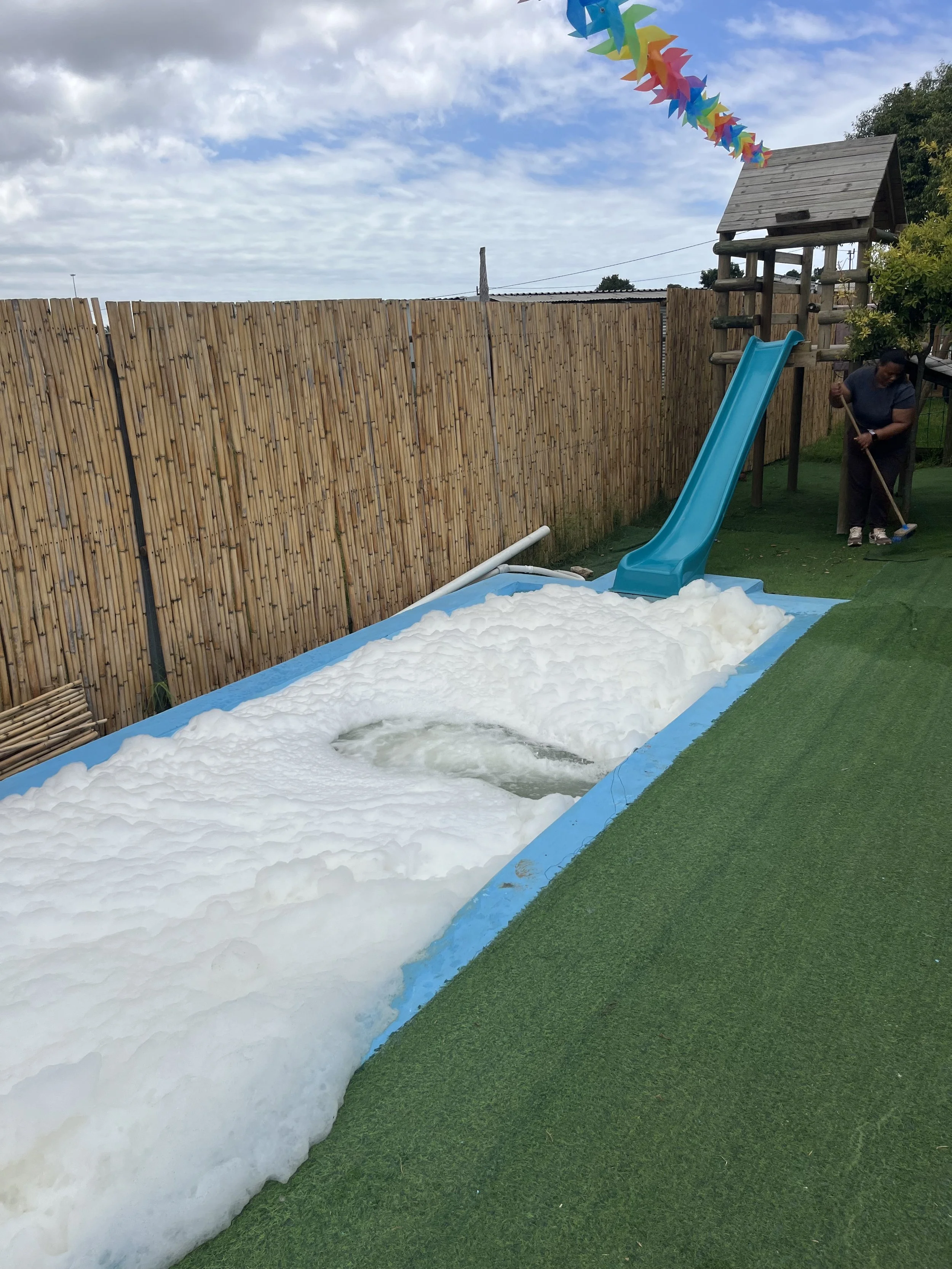 Ook het zwembadje vroeg weer de nodige aandacht. Nadat Sebastiaan en ik het water hadden laten testen, werd ons geadviseerd om verschillende middelen aan te schaffen om het water weer schoon te krijgen. Omdat Sebastiaan de volgende dag niet kwam opdagen en mijn geduld niet mijn sterkste kant is besloot ik de middelen zelf toe te voegen. In mijn enthousiasme gebruikte ik echter iets te veel, met als gevolg een enorm schuimbad. De pomp deed gelukkig goed zijn werk, maar die had eigenlijk minstens twaalf uur moeten draaien. En ja… je raadt het al, de stroom viel weer uit, waardoor we de cyclus niet konden afmaken. Zwemmen zat er dus niet in, maar de kinderen hadden alsnog de grootste lol met het weg scheppen van het schuim. Morgen gaan we weer verder met de volgende stappen, al vermoed ik dat de schuimmassa ons nog wel even zal blijven achtervolgen.