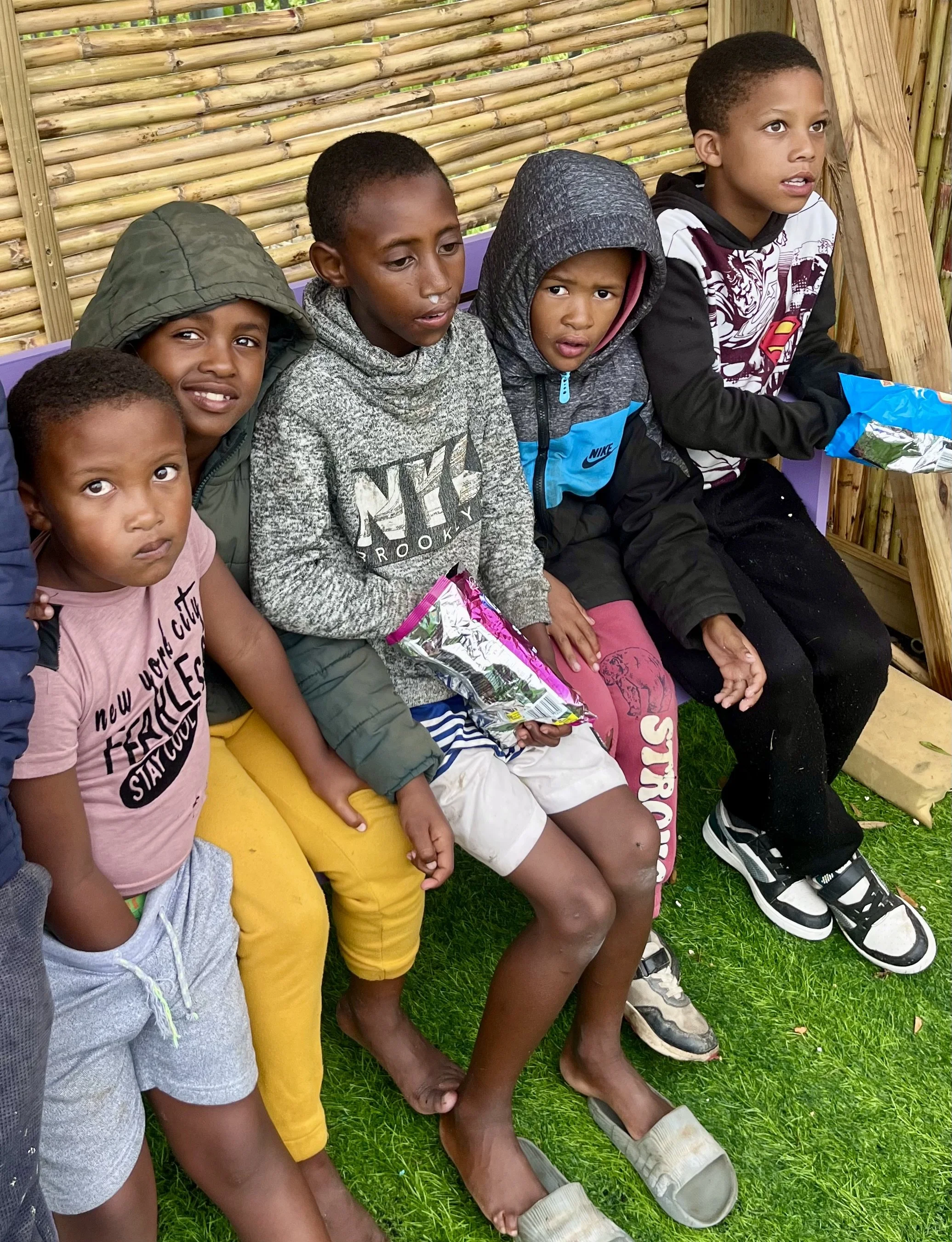 Anastacia is inmiddels vertrokken; zij heeft een mooie fulltime baan gekregen als onderwijzeres op een basisschool in de buurt. En alsof het zo moest zijn, kreeg ik precies op dat moment een bericht van een kennis die een andere stichting runt. Zij had een onderwijzeres die haar werk daar neerlegde om dichter bij haar kinderen in Thembalethu te kunnen zijn. Toeval bestaat niet… Vanaf morgen versterkt Geneviève ons team. Zij is Xhosa, maar spreekt ook vloeiend Engels en Afrikaans, wat een enorme verrijking is. Christina, Susan en ik spreken geen Xhosa, en juist dat zorgt vaak voor communicatieproblemen met de Xhosa-kinderen. Ik kijk met vertrouwen uit naar deze samenwerking, de tijd zal het uitwijzen.