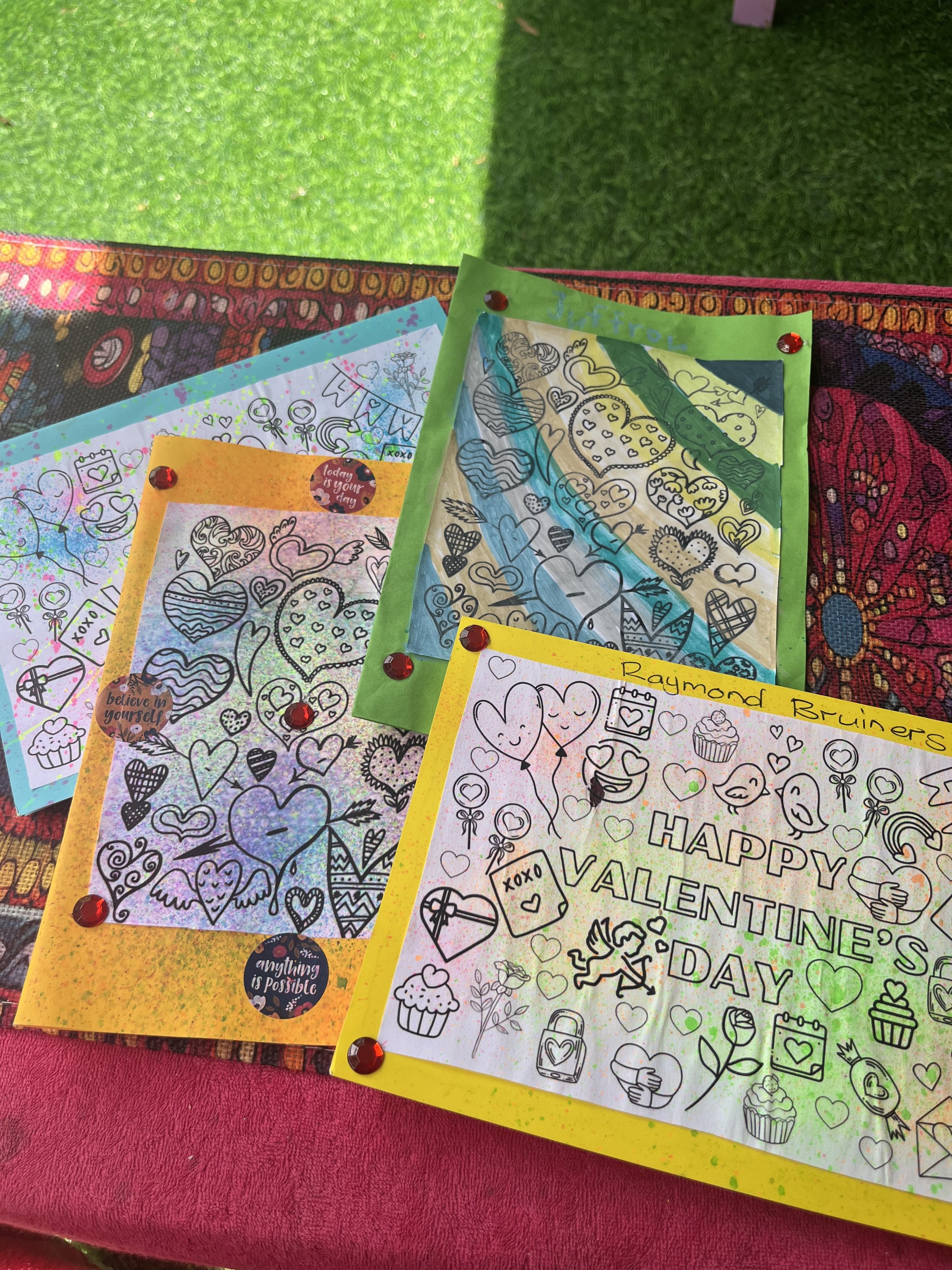 In het kader van Valentijn hebben we kaarten gemaakt die de kinderen konden inkleuren en versieren. De meeste kaarten waren voor hun mama’s, maar ik mocht er zelf ook een paar ontvangen, altijd hartverwarmend.
