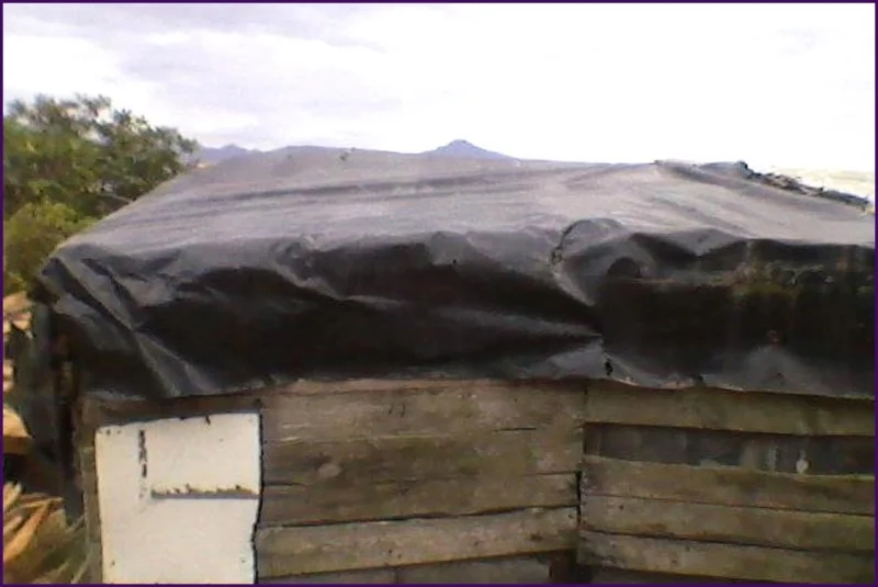 Dit was de hut waar Veronica met haar twee kids in woonde, een dak van vuilniszakken, zo lek als een mandje.
